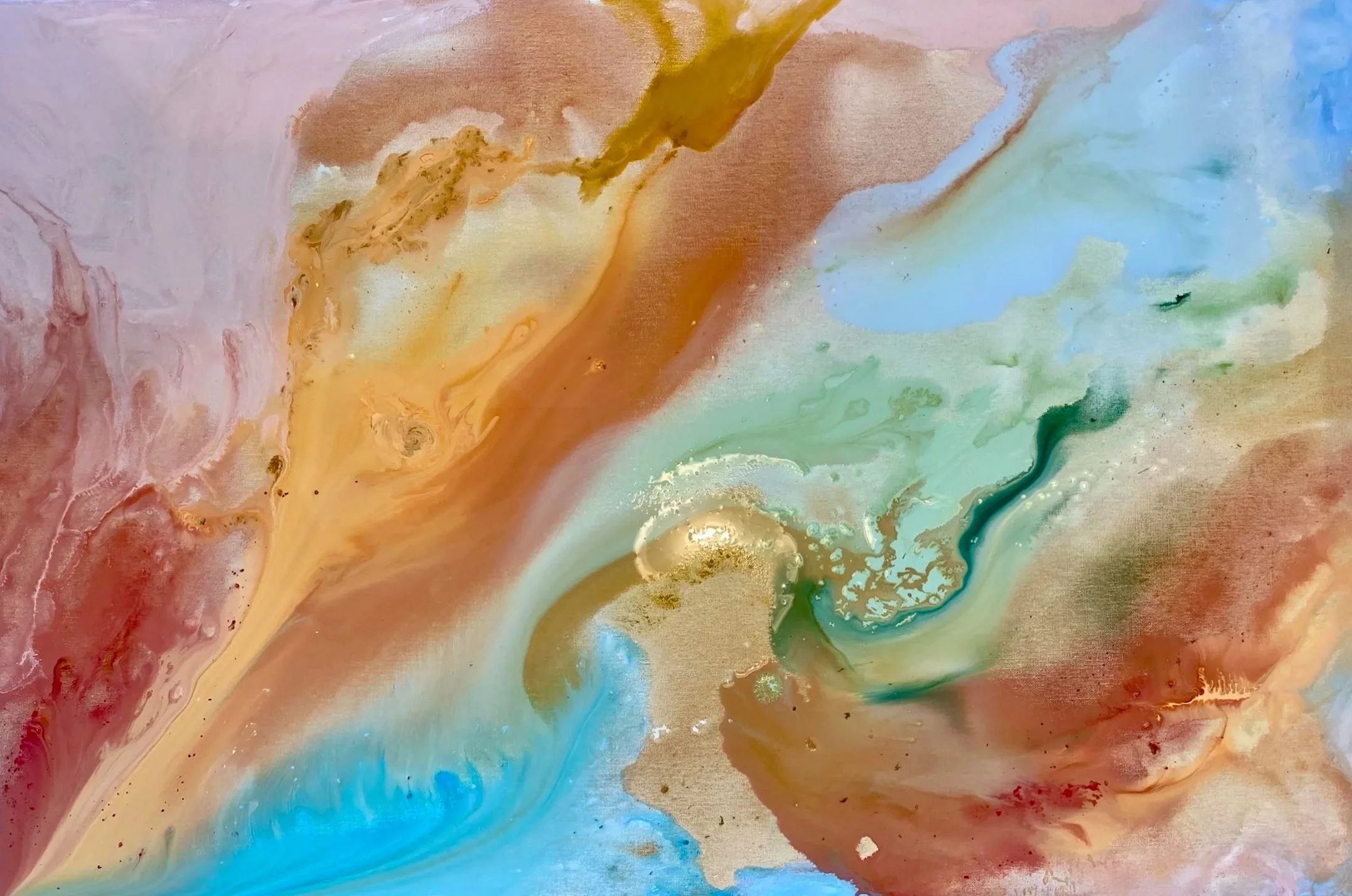 -river- wide, deep, flowing or peaceful reflecting life’s journey through chaos and then on the bend joy. acrylic + pigment stick on canvas 91 X 61cm $600